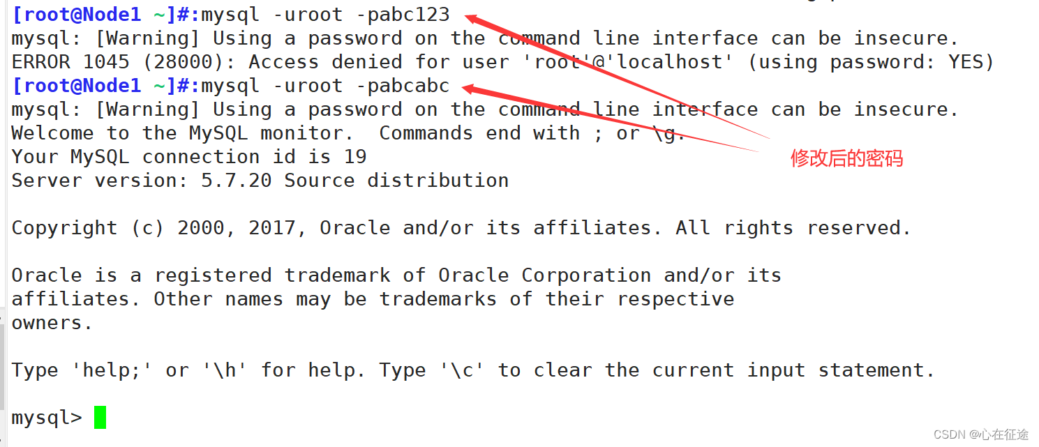 ctrl + D 退出数据库重新登录,使用密码abcabc登录。先试试原密码abc123。