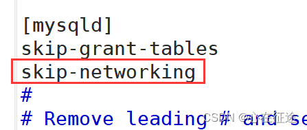 在下方添加skip-networking配置,关闭端口号。