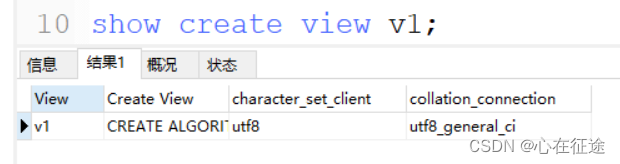 显示视图:show create view v1;