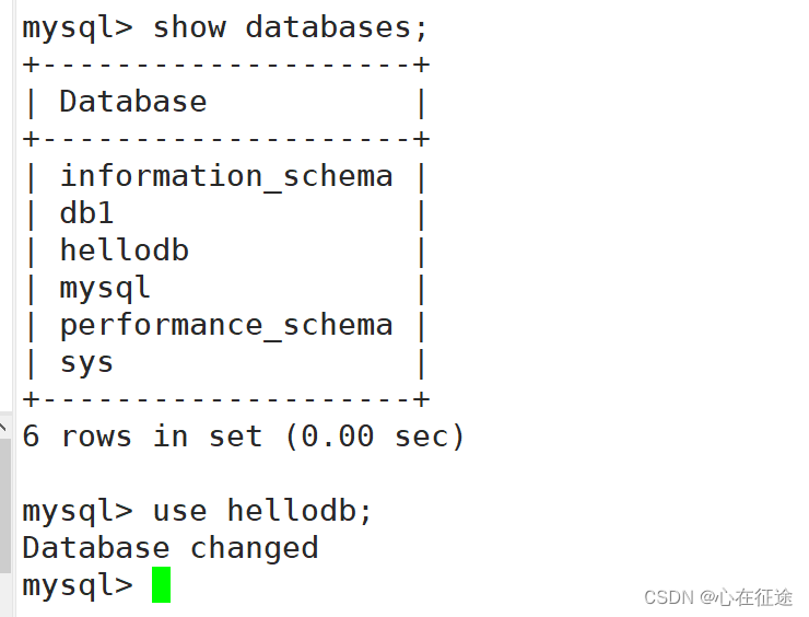 进入数据库hellodb;use hellodb;
