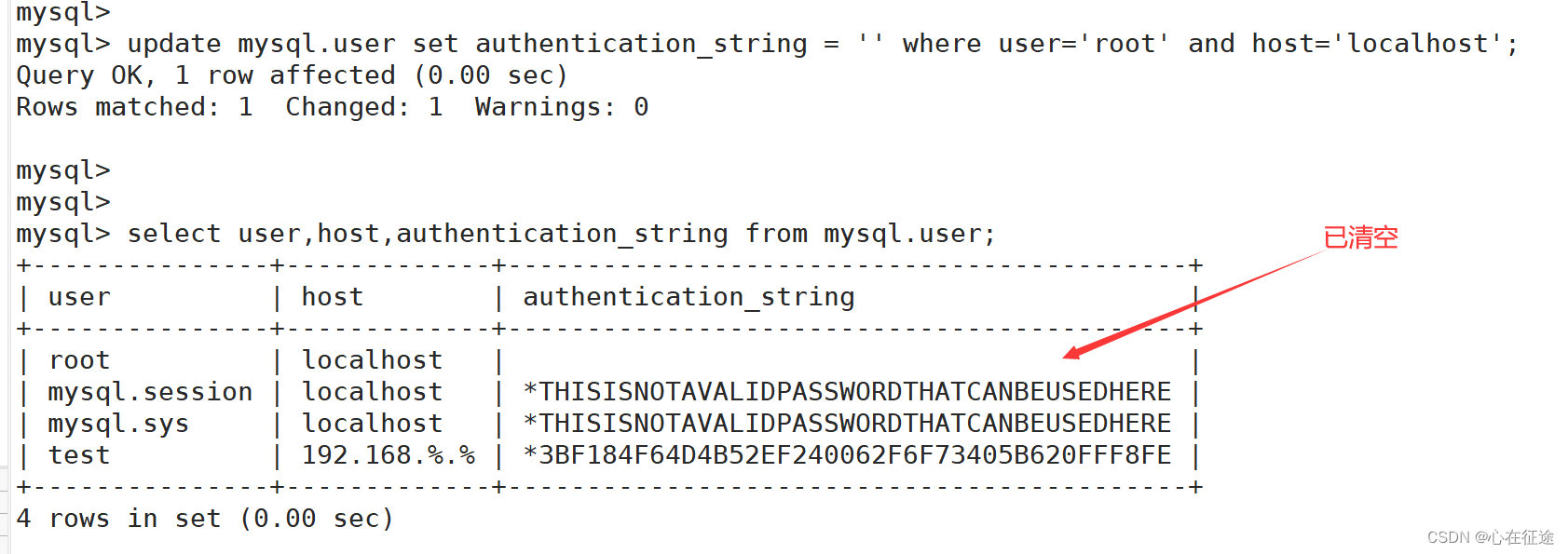 我们在本地登录数据库:清空本地用户密码。