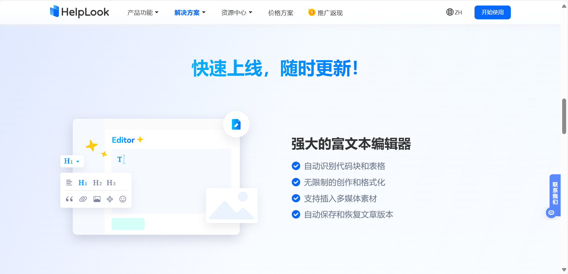 在这里推荐您使用HelpLook这款SaaS软件,无需下载,开箱即用,不仅有强大的编辑器,还支持多人在线协作。感兴趣的话可以通过邀请码【LookCSDN】,免费体验HelpLook。