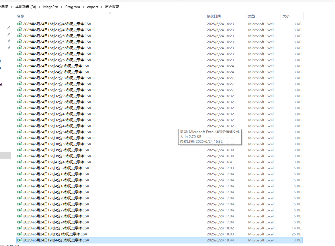 文件名 = "历史报警/"+!Str($Year)+"年"+!Str($Month)+"月"+!Str($Day)+"日"+!Str($Hour)+"时"+!Str($Minute)+"分"+!Str($Second)+"秒"+"历史事件.CSV"