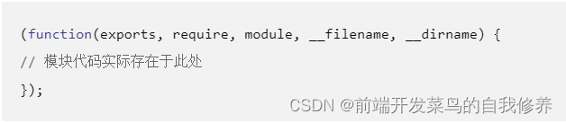 1、在 Node.js 中每个文件都被当做是一个独立的模块,模块内定义的变量和函数都是独立作用域的,因为 Node.js 在执行模块代码时,将使用如下所示的函数封装器对其进行封装