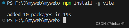 来到vscode终端,执行 npm install -g vite 命令: