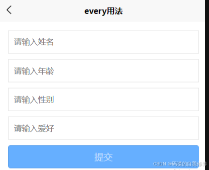 如下图所示,表单中的提交按钮默认是禁用的,只有当表单中所有的输入框都输入值的情况下,按钮才会由禁用转为可用状态。