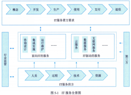 按照国务院发展研究中心的相关研究成果定义,信息服务包括信息传输服务、IT服务和信息内容服务。总体来说,IT服务除了具备服务的基本特征外,还具备本质特征、形态特征、过程特征、阶段特征、效益特征、内部关联性特征及外部关联性特征7个方面的内涵。
