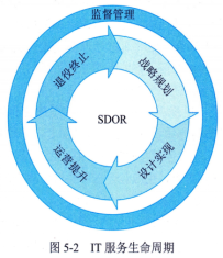 IT服务生命周期是指IT服务从战略规划、设计实现、运营提升到退役终止的演变,如图5-2所示。IT服务生命周期的引入,改变了IT服务在不同阶段相互割裂、独立实施的局面。