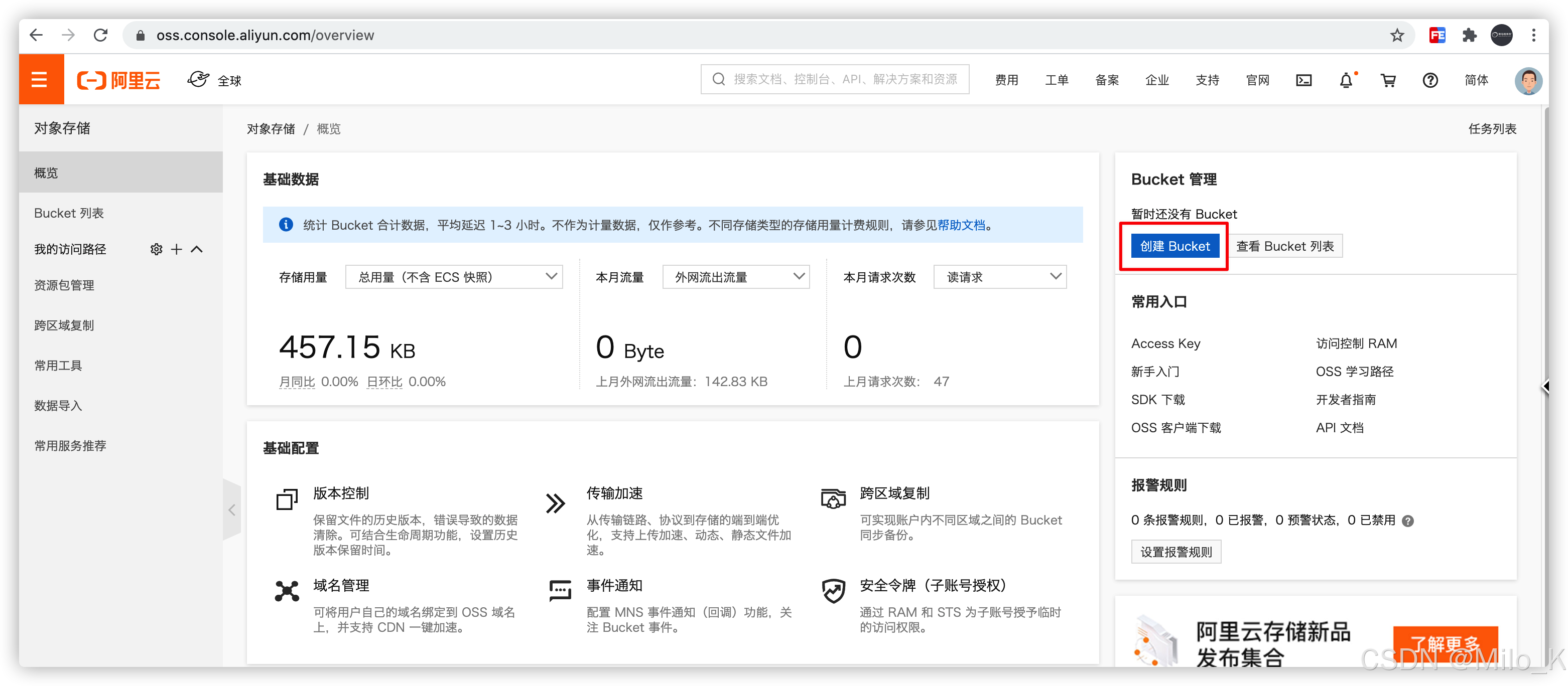 在阿里云管理控制台执行基本和高级OSS任务。