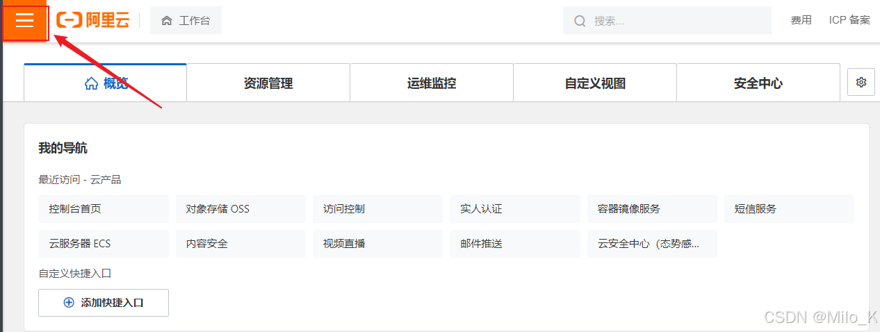 登录阿里云官网。 点击右上角的控制台。