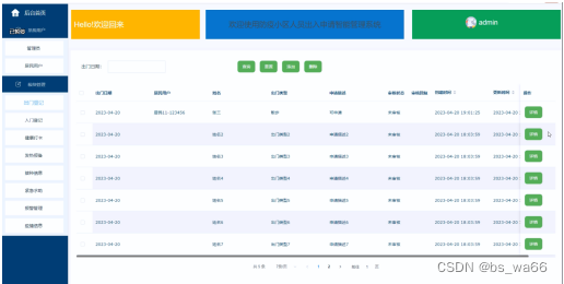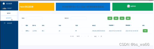 经过几个月的努力还坚持,防疫小区人员出入申请智能管理系统终于完成了,程序功能模块能按照需求来运行,能实现多管理员的迸发使用,但是系统由于设计经验以及旅行团知识的局限性,在本系统的开发过程中,在一些功能方面和业务逻辑方面做得不是很完善,系统还存在一些缺陷。界面的设计从布局到外观,受限于自身的设计功底较低,没能达到自己所要设计的界面要求,另一方面,系统存在一些没有考虑的问题和模块。