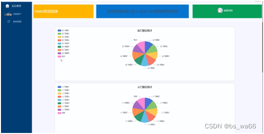 管理员等会成功以后会在首页界面以分析图的形式查看到系统中的出门登记统计和入门登记统计信息。界面如下图5-9所示。