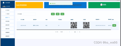 | 删除 | 管理员进入健康打卡管理页面,点击删除按钮 | 弹窗提示,删除成功 | 成功 |