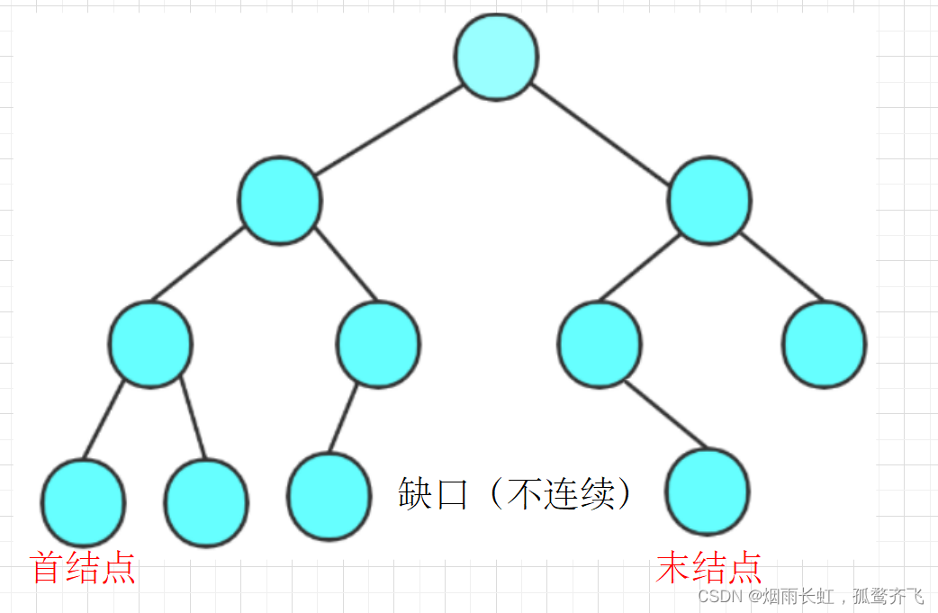 如上图所示就 非 完全二叉树:深度为 K 的节点中,从首结点到末结点中有 “ 缺口 ”