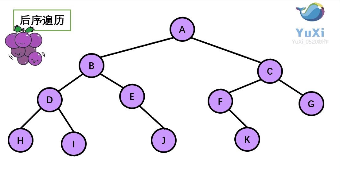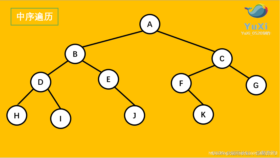 我们发现有H、I、J、K、G五个左右子树为空,所以叶子结点的个数为5