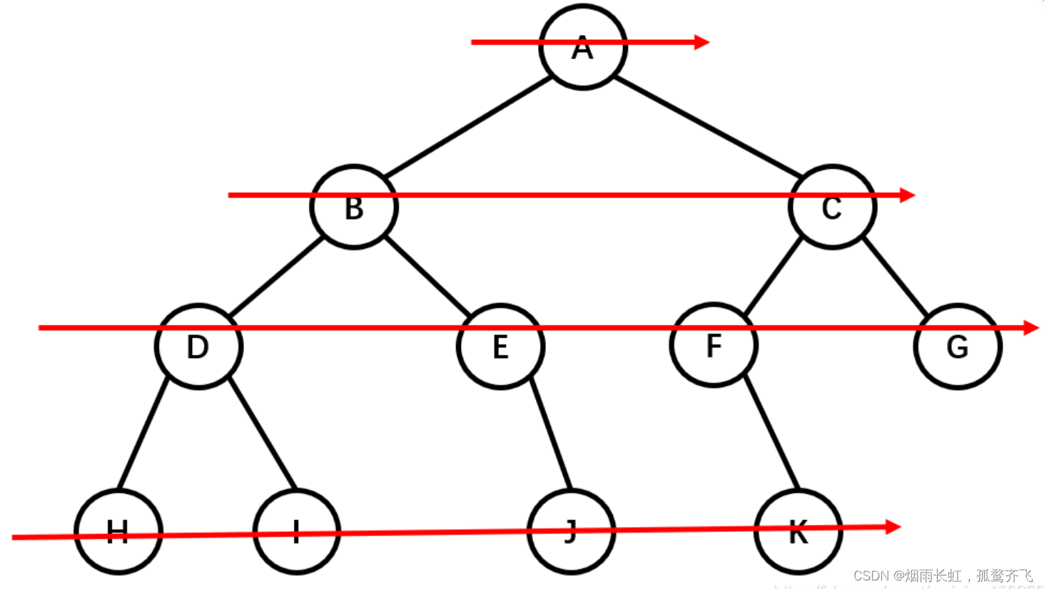 void Levelorder(BTNode* root) { Queue q; QueueInit(&q); //树为空,直接返回 if (root == NULL) { return; } QueuePush(&q, root); //先将根节点入队 while (!QueueEmpty(&q)) { BTNode* front = QueueFront(&q); //出队保存队头并访问 QueuePop(&q); printf("%c ", front->data); if (front->left) //将出队结点的左子树根入队 { QueuePush(&q, front->left); } if (front->right) //将出队结点的右子树根入队 { QueuePush(&q, front->right); } } printf("\n"); QueueDestory(&q); //销毁队列 }