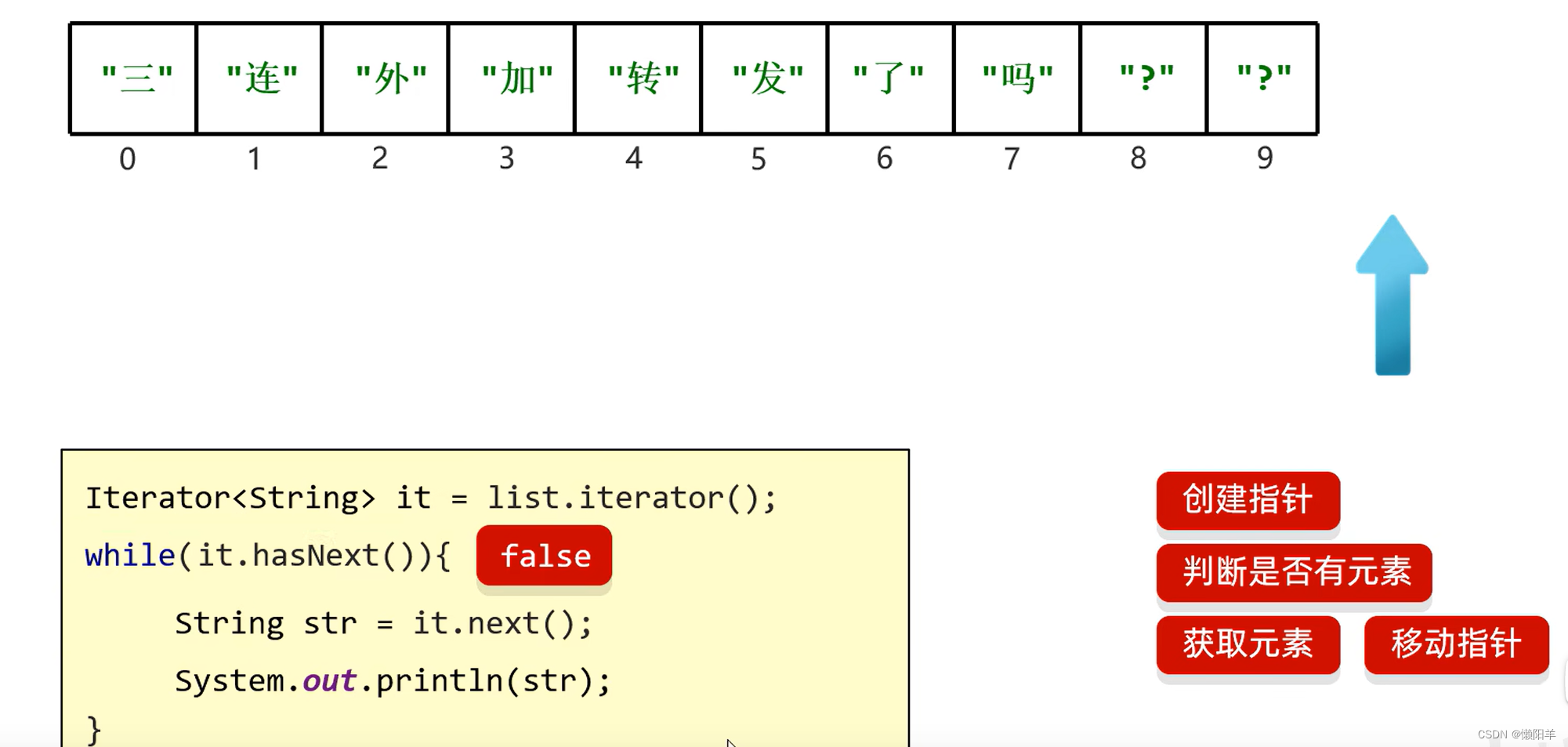 Iterator<String> it = con.iterator();//创建迭代器对象