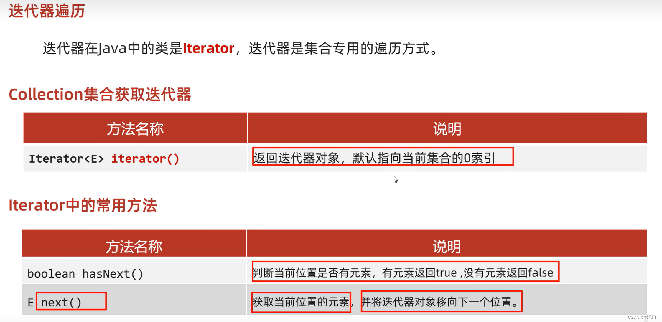 iterator方法:返回一个在一组E类型的元素上进行迭代的迭代器,相当于创建一个指针指向0索引。