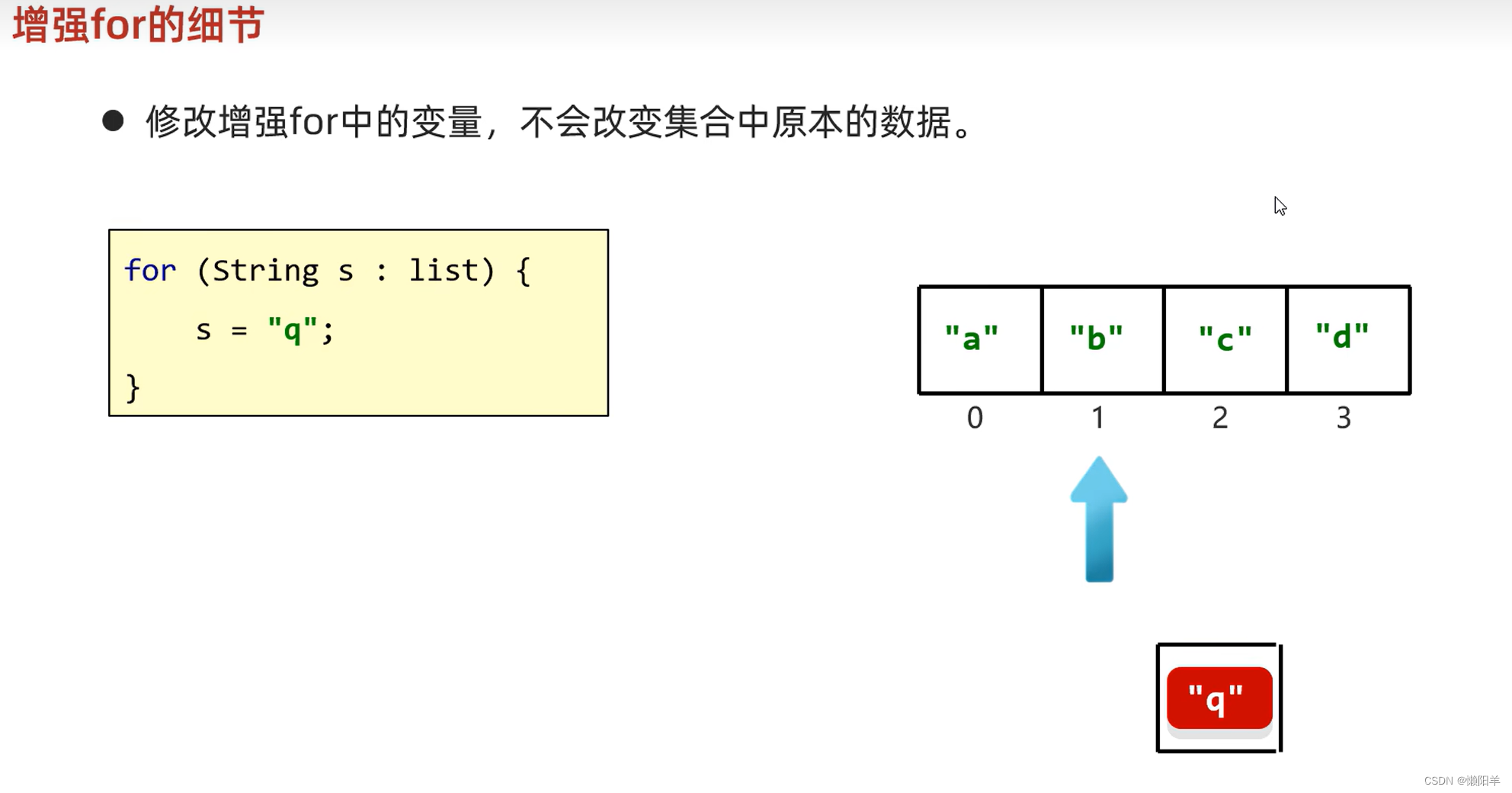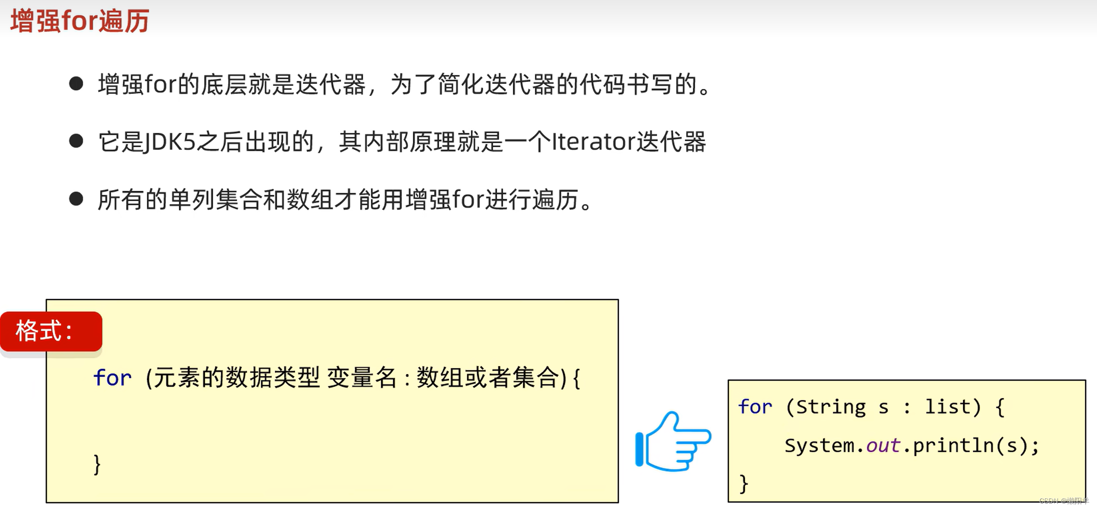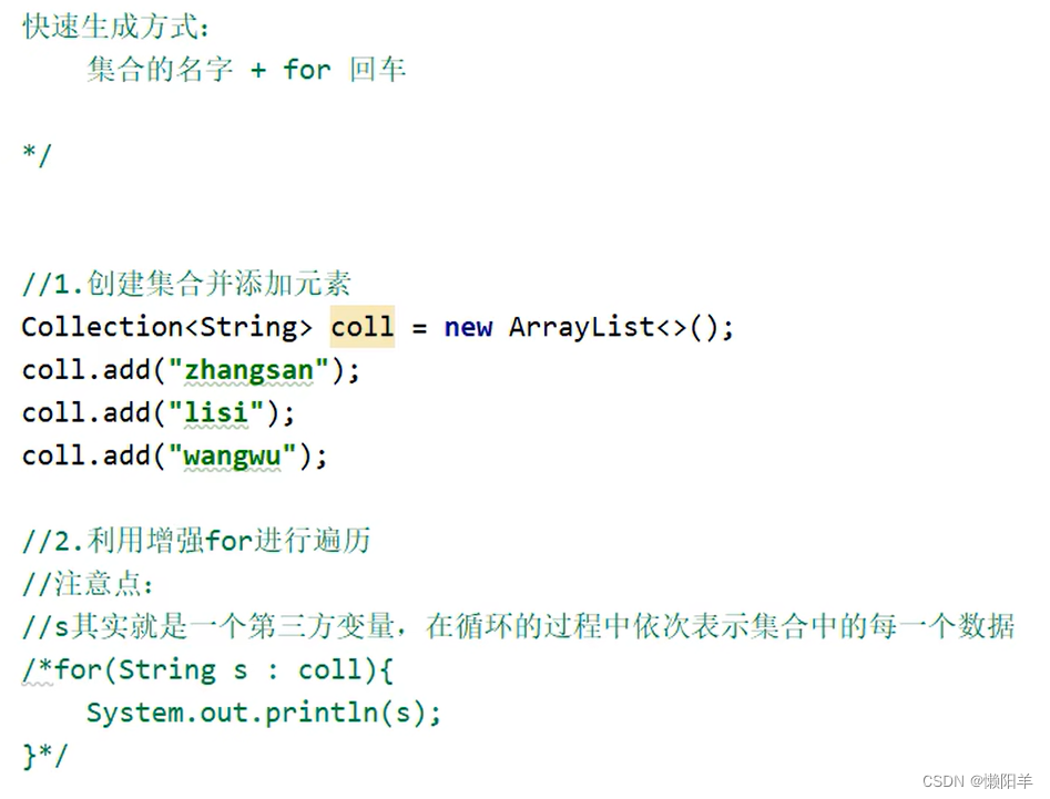 //因为没有索引的概念,所以Collection集合不能使用fori进行遍历