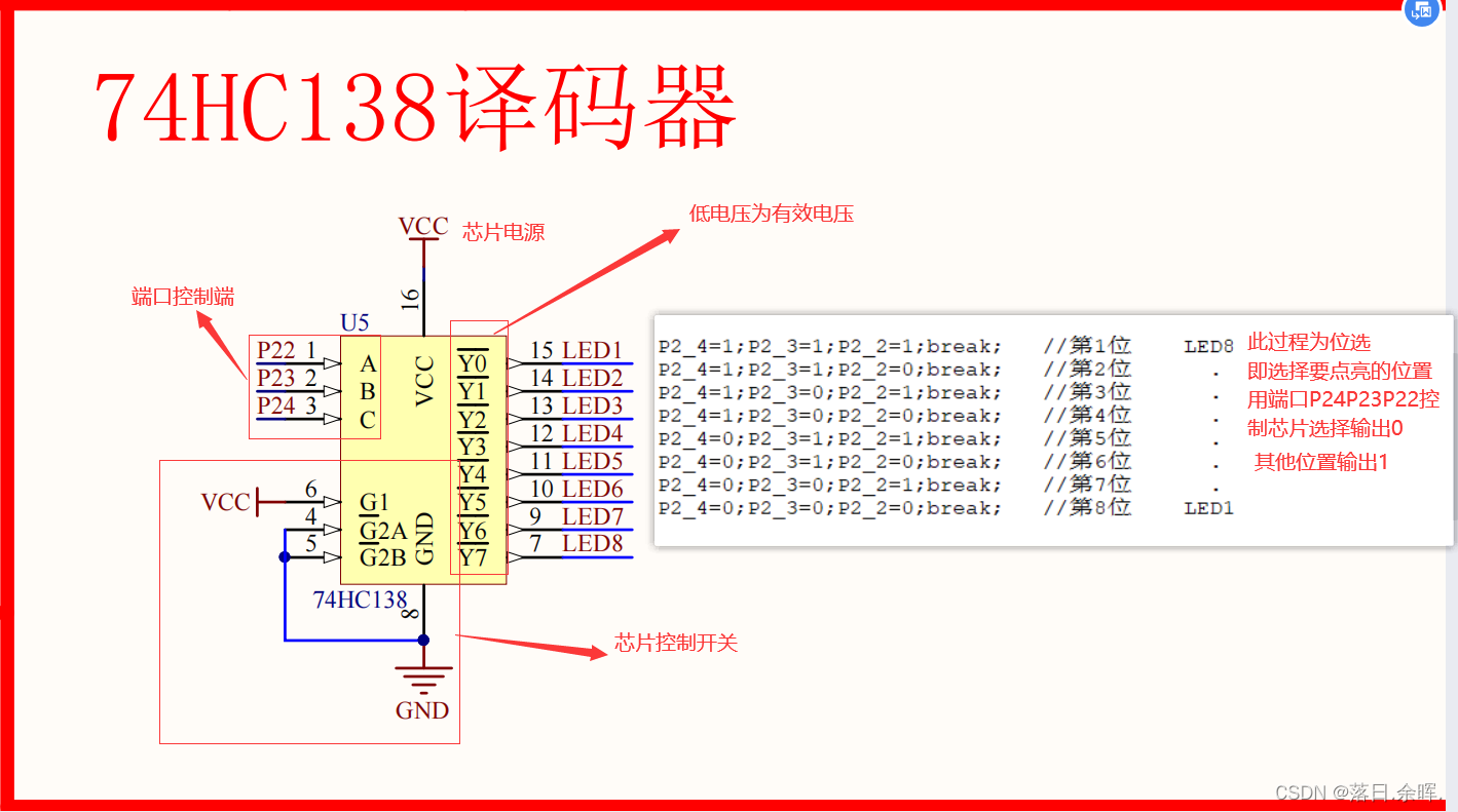 0基础51单片机LED模块 根据STC89C52RC芯片,A2开发板原理图可以看到LED的正极都接有VCC高电压,因此想点亮的LED,P2引脚应为低电压(0)。初次学习51单片机,发博客记录一下,希望帮助像我一样的小白,或者有大佬给我建议。