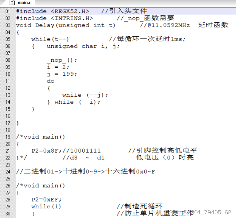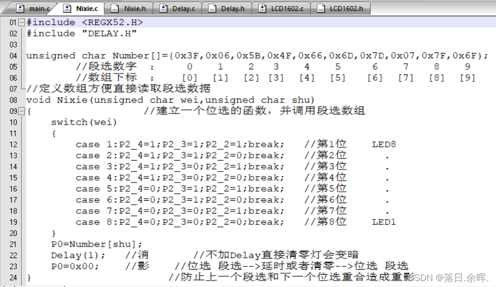 0基础51单片机模块化编程(LCD1602) 根据之前的代码我们可以看出像Delay(),Nixie()等函数在使用过程中经常固定,因此这些函数可以不用放在主函数中,以达到简洁明了的效果。最后将单片机中的调试工具LCD1602的使用源码(.c和.h)分享给大家。2.为所写的.c文件创建.h文件(头文件),以达到声明函数的作用。3.在主函数中进行预编译,这样就可以直接掉用头文件中所声明的函数。1.将定义好的模块化函数放到.c文件中。
