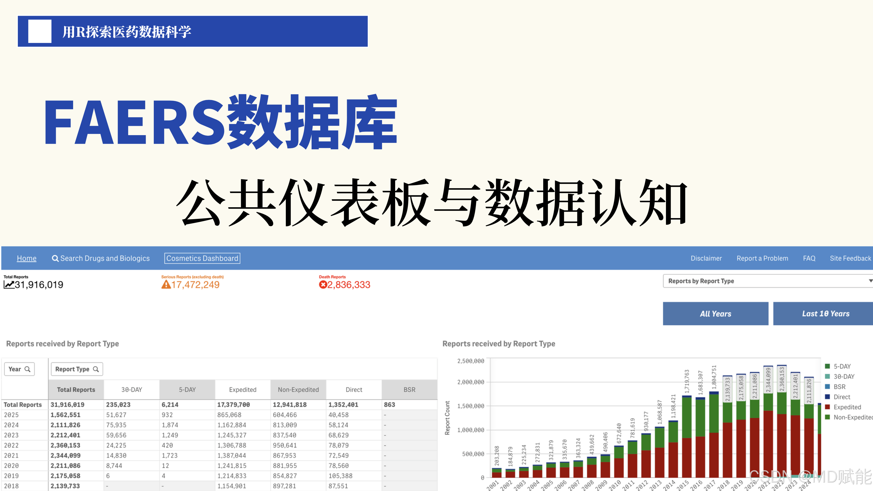 药品安全是公共健康体系中不可或缺的一环。从临床研发到上市审批,药品经历了严格的试验与评估,但这些工作往往在受控条件下进行,样本量、时间周期和人群结构都存在局限。一旦进入真实世界的临床使用,药品面临的是数量更庞大、病情更复杂、用药方式更灵活的患者群体,此时,一些罕见的不良反应或长期安全隐患才可能逐步显现。因此,药品上市后的持续安全监测(Post-Marketing Surveillance)与早期信号识别至关重要。为应对这一挑战,美国食品药品监督管理局(FDA)建立了完善的不良事件收集与分析机制,其中的核心数据库——不良事件报告系统(FAERS)承担着药品安全“哨兵”的角色。近年来,FDA更是通过开发FAERS公共仪表板,让这一庞大的数据资源更加公开透明,使公众、科研人员和临床工作者都能便捷地参与药品安全信息的查询与利用。