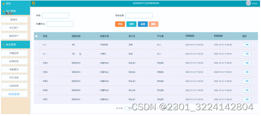 学生管理界面如下图所示。