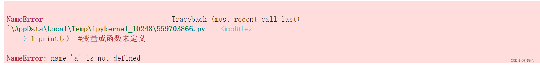 print(a) #变量或函数未定义10/0 #除数不能为0 ZeroDivisionErrorb = 10/atry:a = float( input('请输入a = '))b = 10/aexcept:if a ==0:print('ZeroDivisionError:除数不能为0!
