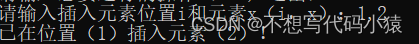 printf("已在位置(%d)插入元素(%d)!\n",i, x);