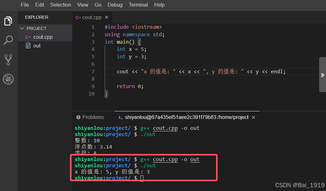 咱们先说说cout的基本的简单操作,cout就类似C语言中的printf,可以只打印输出一个量,也可以连续输出几个量。