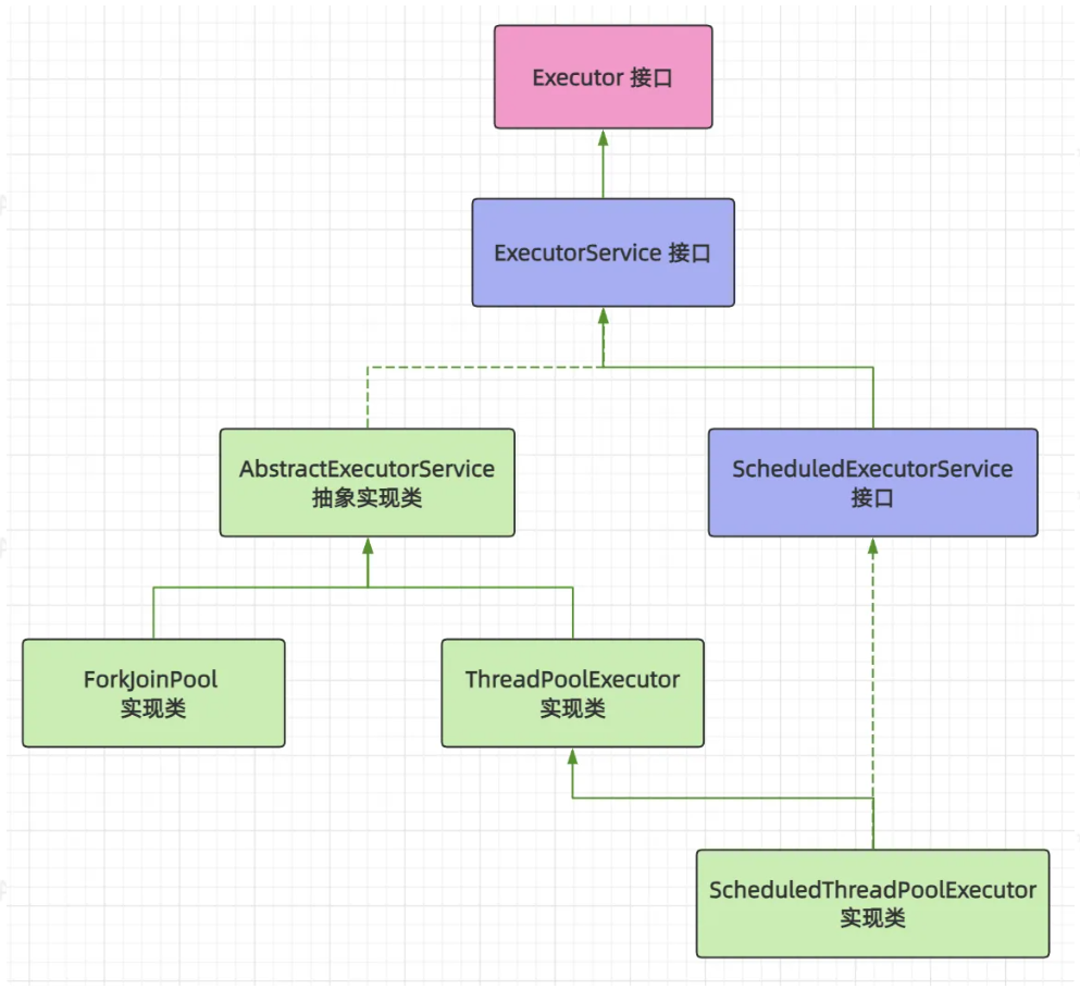 Executor接口:顶层接口,定义了任务提交方法execute(Runnable command)