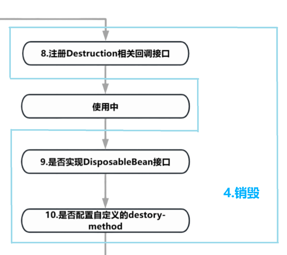 当 Spring 容器关闭(如应用停止)时,单例 Bean 正式进入销毁阶段(原型 Bean 不触发此流程),主要做以下工作: