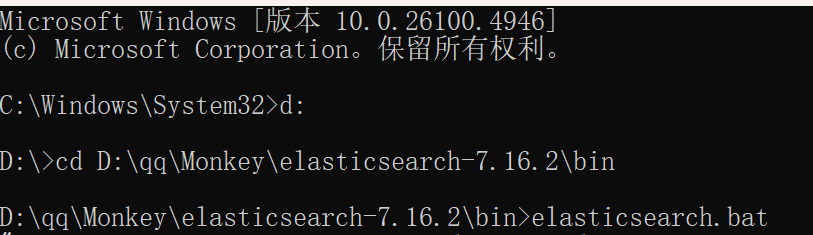 D:\qq\Monkey\elasticsearch-7.16.2>cd D:\qq\Monkey\elasticsearch-7.16.2\bin