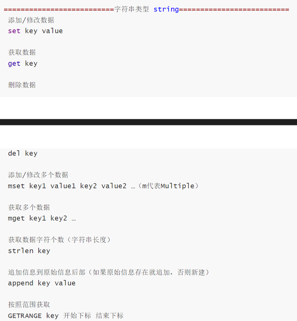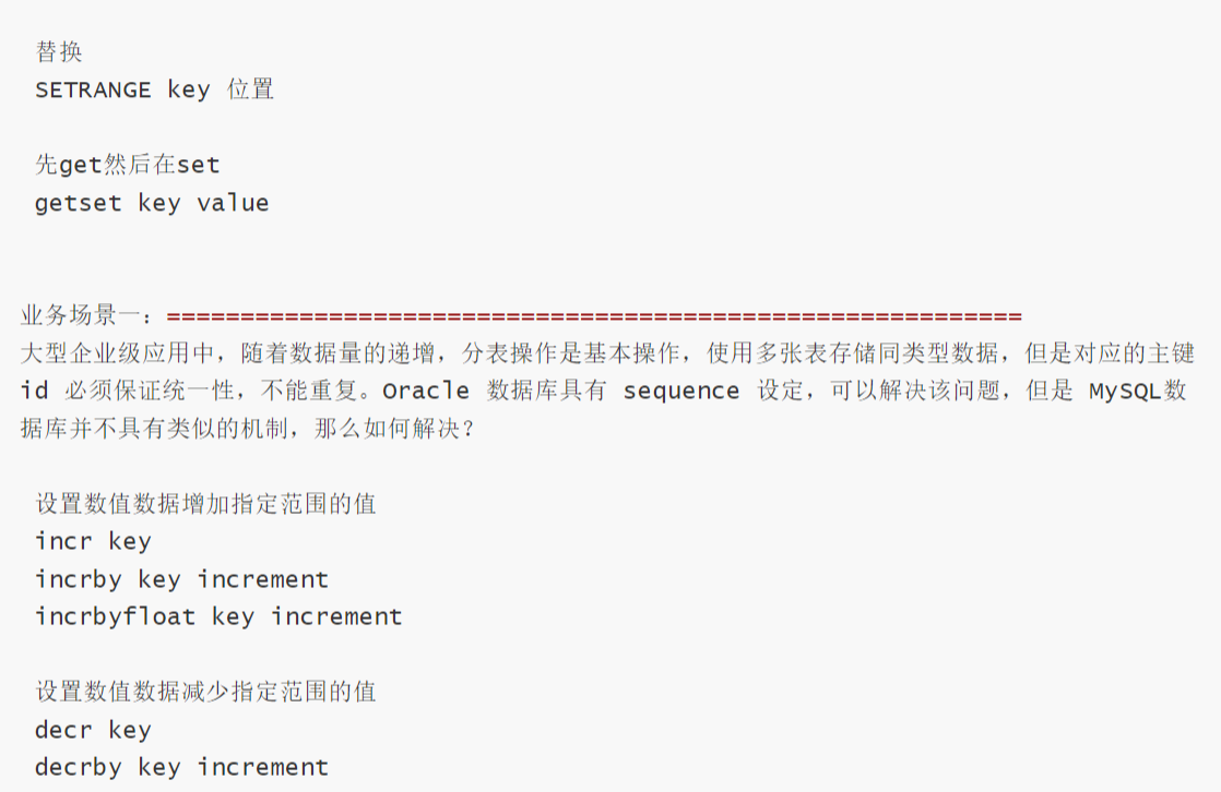 - 是二进制安全的,即可以存储任何编码的字符串(如 UTF-8、二进制数据),最大长度为 512MB。 支持对字符串的部分操作(如截取子串),以及对数字的自增 / 自减(INCR/DECR)、范围增减(INCRBY/DECRBY)等
