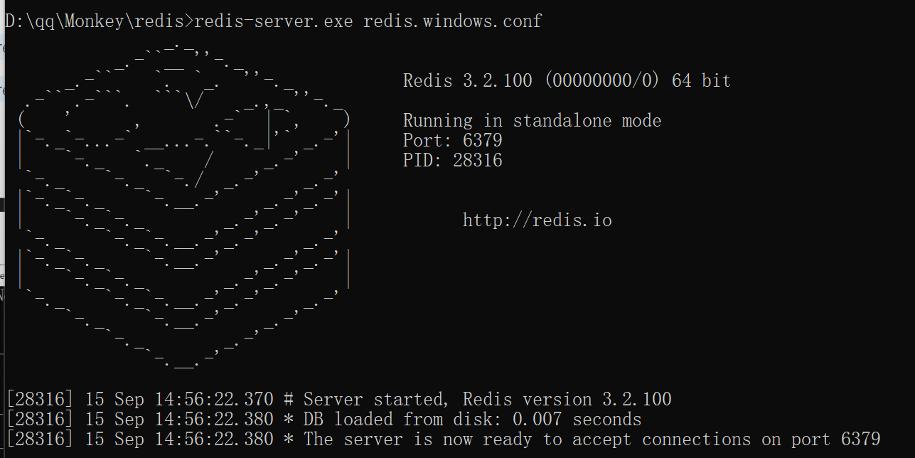 方式2:指令redis-server.exe redis.windows.conf