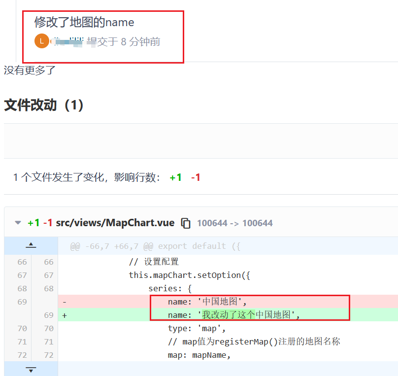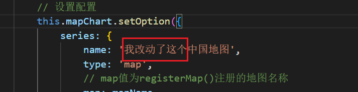 1)我在.vue文件中,把地图原本的name:“中国地图”,修改为 “我改动了这个中国地图”