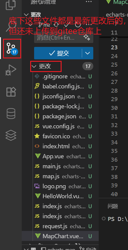 2)再点击源代码管理,可以看到刚刚修改的文件