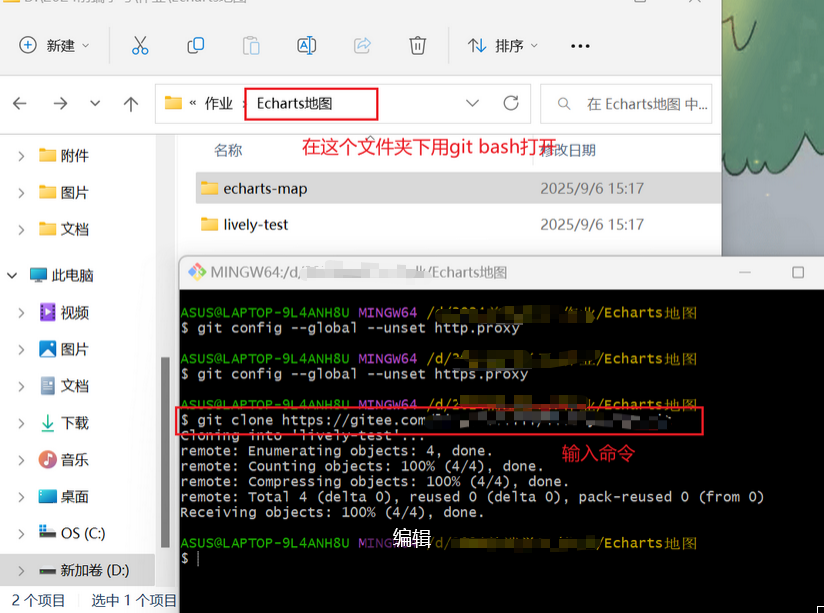 这样就会生成一个刚刚在仓库里命名仓库名称的文件夹