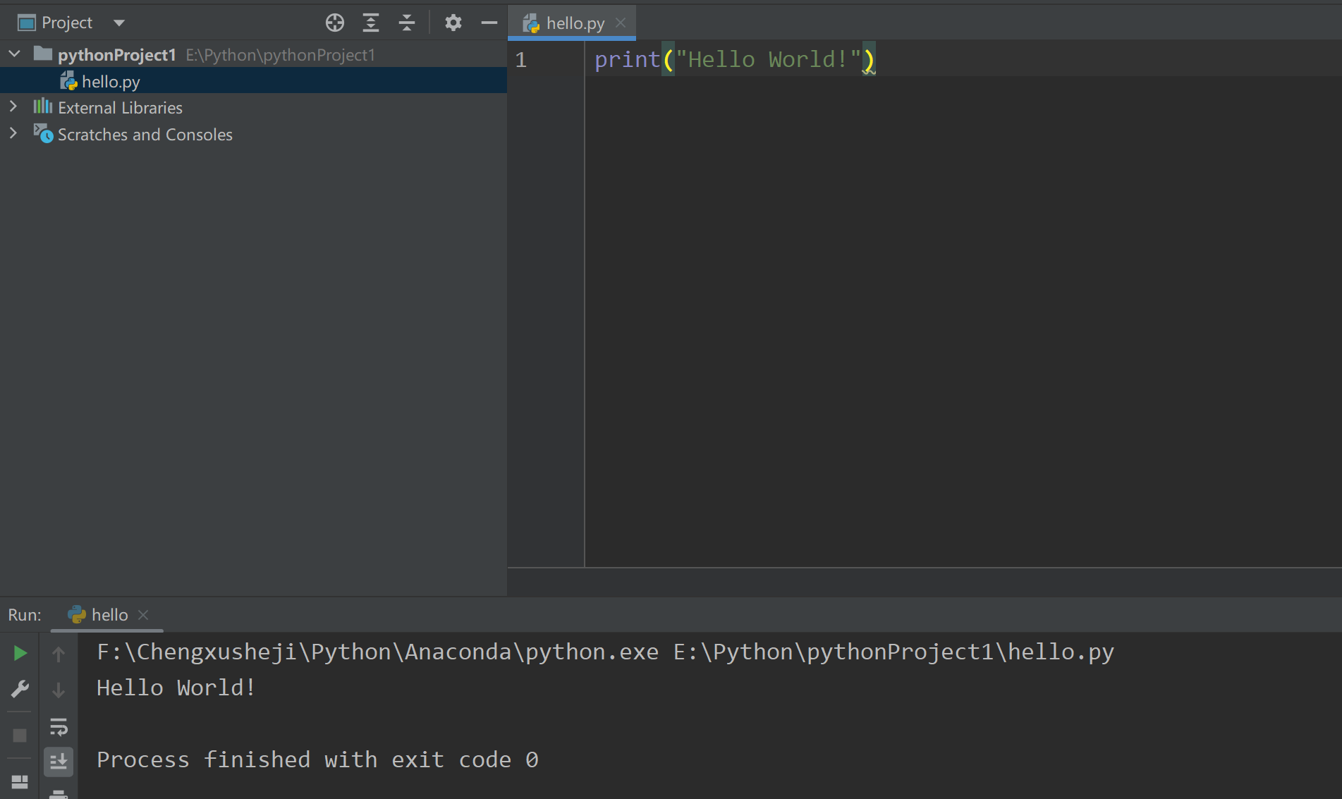之后新增文件运行尝试:如下图成功运行;