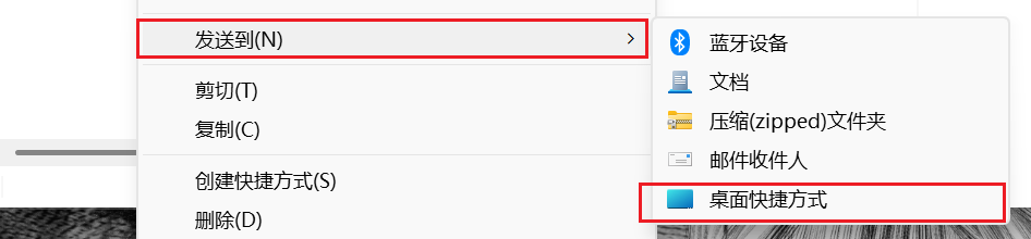 点击发送到 桌面快捷方式即可