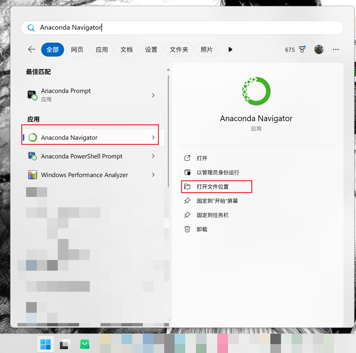 可以按照以下进行:点击 win 键,搜索 Anaconda Navigator