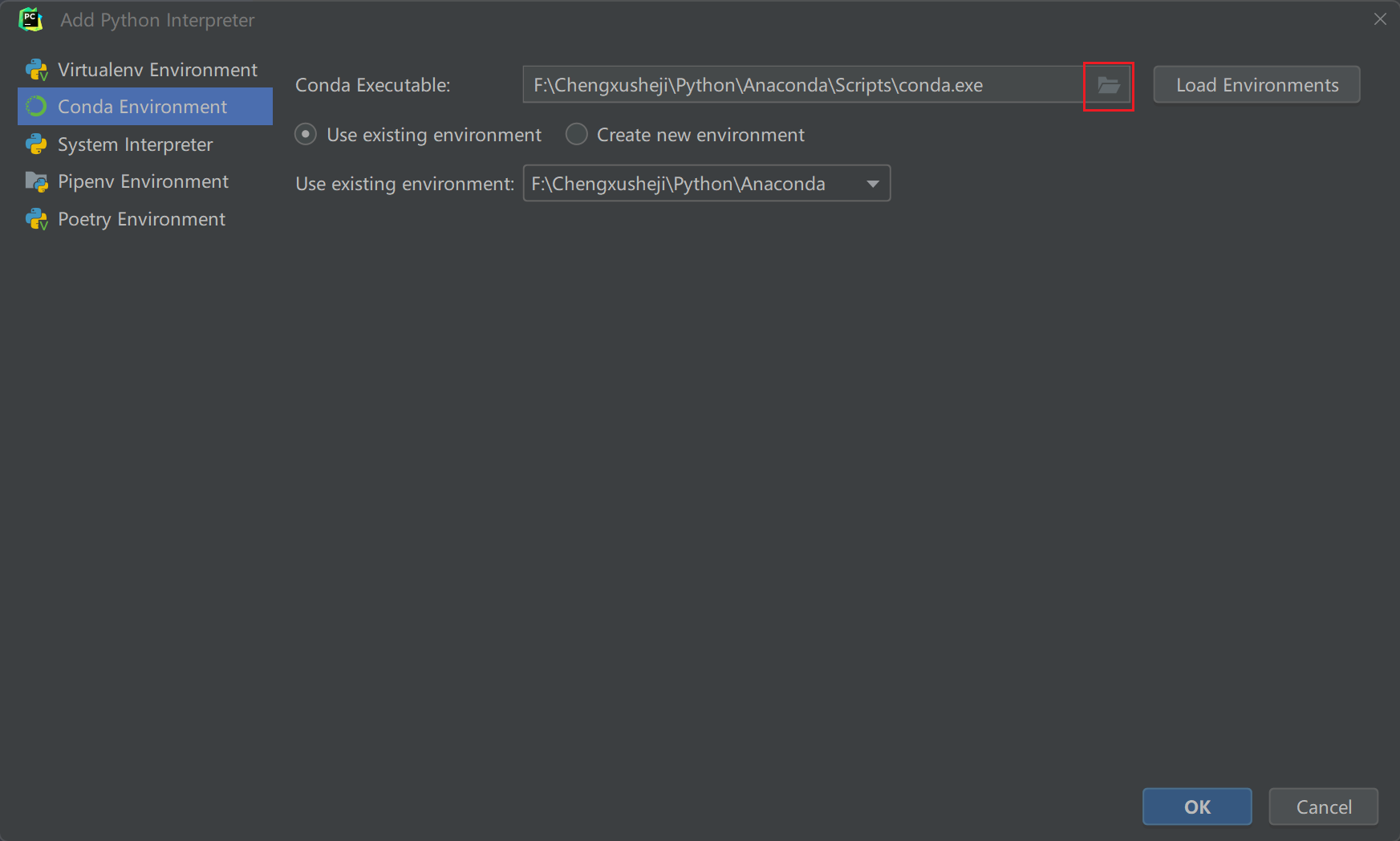 选择Conda Environment;