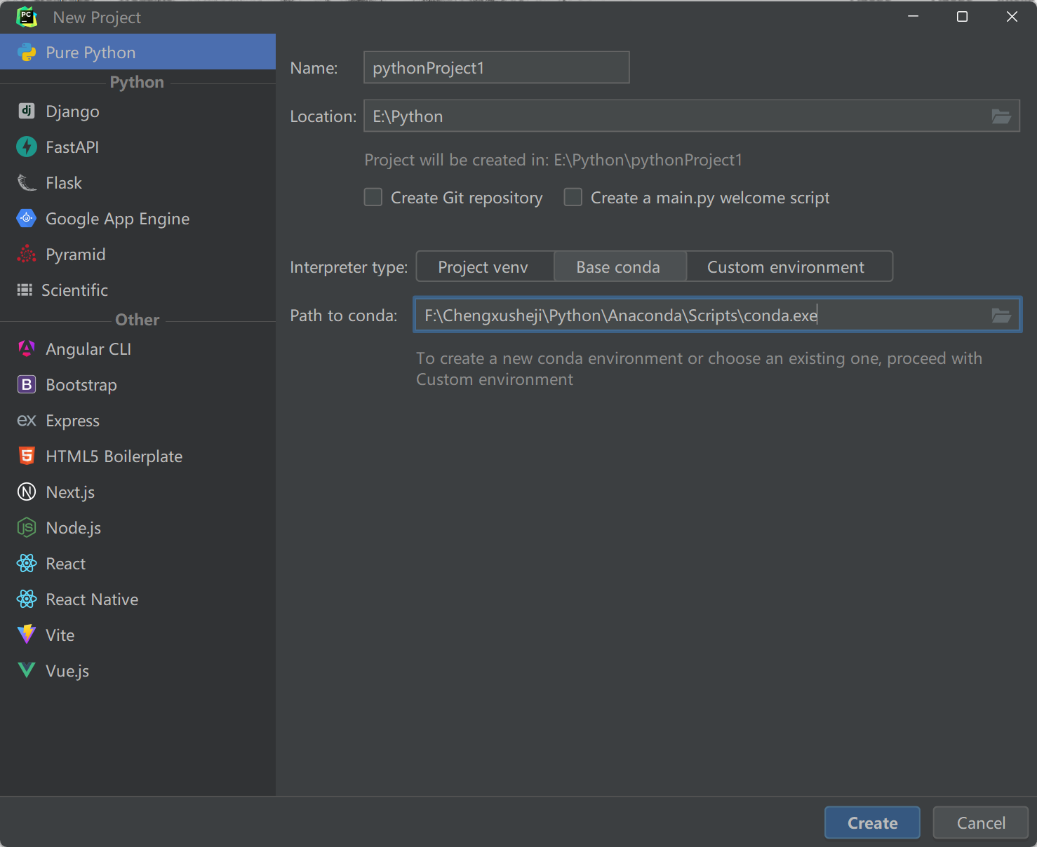 选择你的Anaconda中Scripts下的conda.exe;
