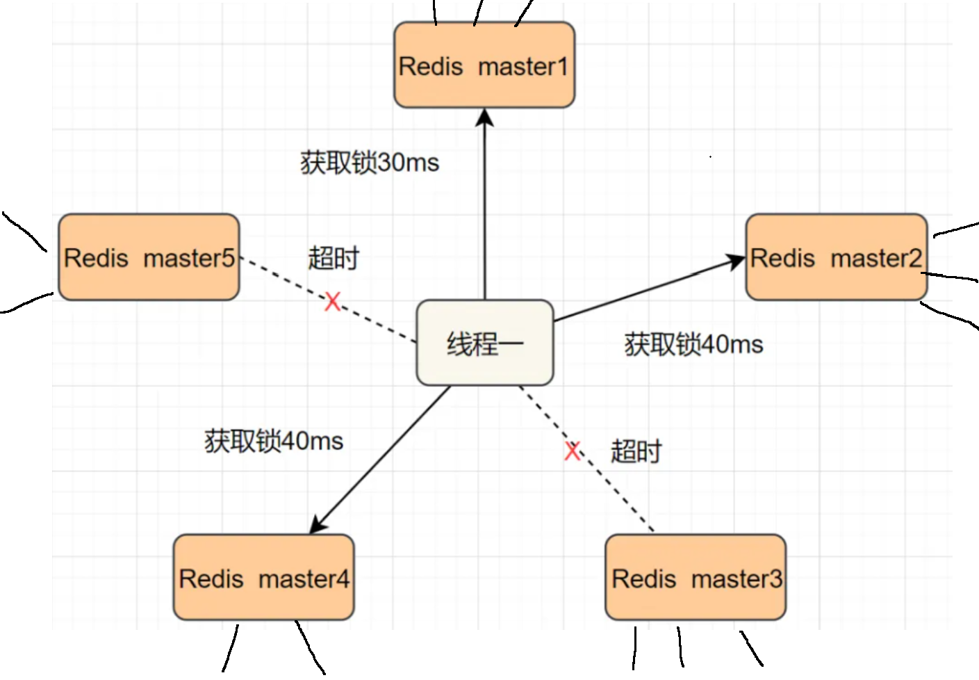 此处加锁,就是按照一定的顺序,针对这些组redis都进行加锁,如果某个节点挂了,继续给下一个节点加锁即可,如果写入key成功的节点个数超过总数的一半,就视为加锁成功。同时解锁也是相同的操作