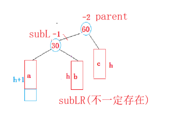 右单旋就是将左边提起,把subLR连到parent的左边,parent连到subL的右边,就跟将subL提起来了一样。