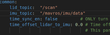 lid_topic换成自己的雷达话题,imu_topic如果有实机的mid360可以改为livox/imu如果没有就用这个就行。