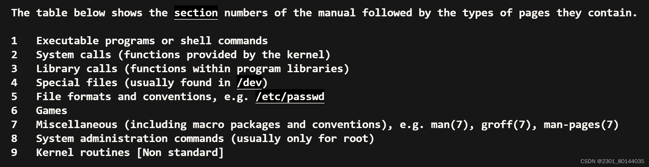7其他(包括宏包和约定),例如man(7)、groff(7)和man page(7)