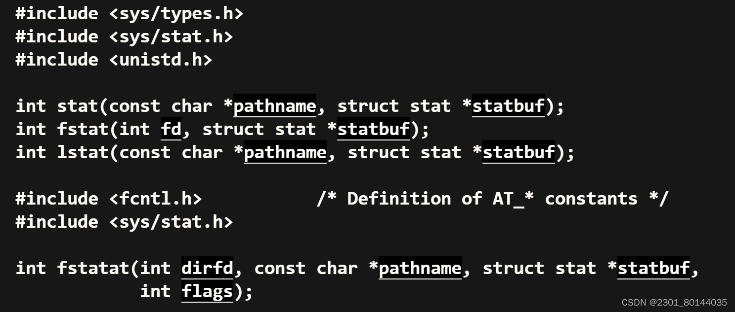 statbuf:一个指向struct stat结构体的指针,用于存储获取到的文件或目录的inode信息。