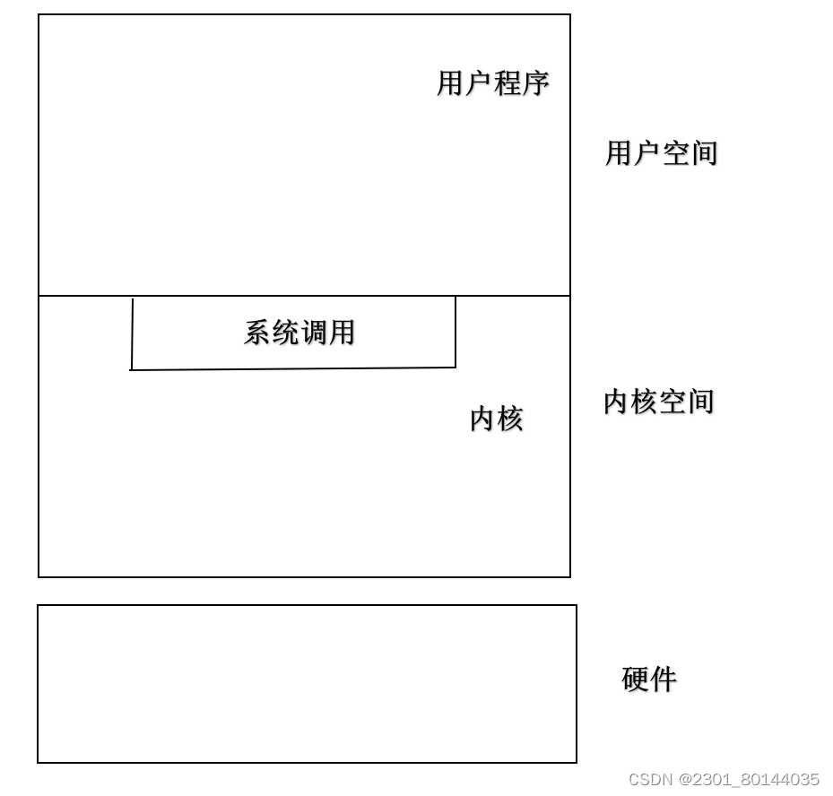 通过系统调用这个接口,Linux将上层应用与下层的内核分离,由于具体过程复杂,我们只能这样简单地理解。
