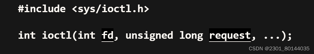 在使用ioctl函数时,需要根据具体的设备和需求来确定request参数的值。不同的设备和功能对应着不同的请求码。一般情况下,请求码由设备驱动程序定义,并通过头文件或宏定义提供给应用程序使用。